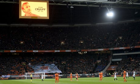 Johan Cruyff tribute: Holland v France halted in 14th minute to honour legend