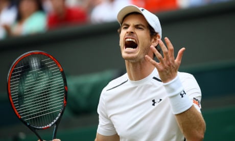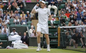 Britain’s Andy Murray survived a major mid-match blip to beat France’s Jo-Wilfried Tsonga in five sets on Centre Court at Wimbledon. Photograph: Tom Jenkins for the Guardian
