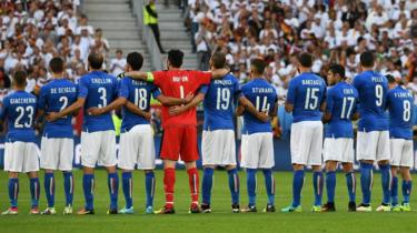 Image copyrightAFPImage captionThe Italian football team stood in silence for the victims before their match against Germany in Bordeaux, France