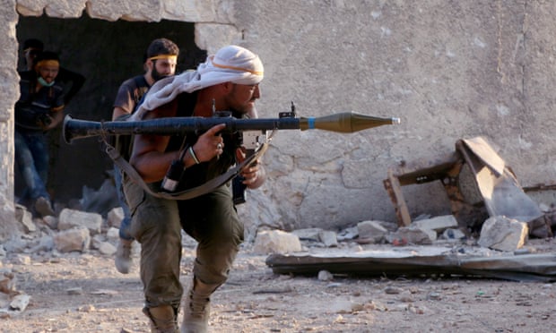 Members of the Jaish al-Fatah coalition clash with Assad regime soldiers in Ramouseh on Saturday. Photograph: Anadolu Agency/Getty Images