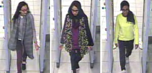 CCTV image of (from left) Kadiza Sultana, Shamima Begum, and Amira Abase going through security at Gatwick airport. Photograph: Metropolitan police/PA
