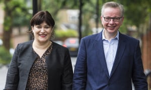 She does, however, sometimes write about her marriage, especially with Gove co-heading the leave campaign. On Wednesday she described how Gove went to sleep at 10.30pm on the night of the vote, and awoke to find he had won. “By now his phone was buzzing and beeping like a demented frog,” she recounted. “‘You were only supposed to blow the bloody doors off,’ I said … in other words, you’ve really torn it now.”